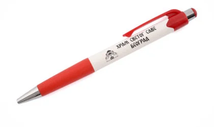 У нашој понуди можете пронаћи класичне хемијске оловке са амблемом Храма Светог Саве. Оне су једноставне, практичне и лаке за руковање. Такође, у нашем асортиману се налазе и елегантне и луксузне писаљке и пенкала, украшене позлатом или посребрене, као и са Сваровски кристалима.