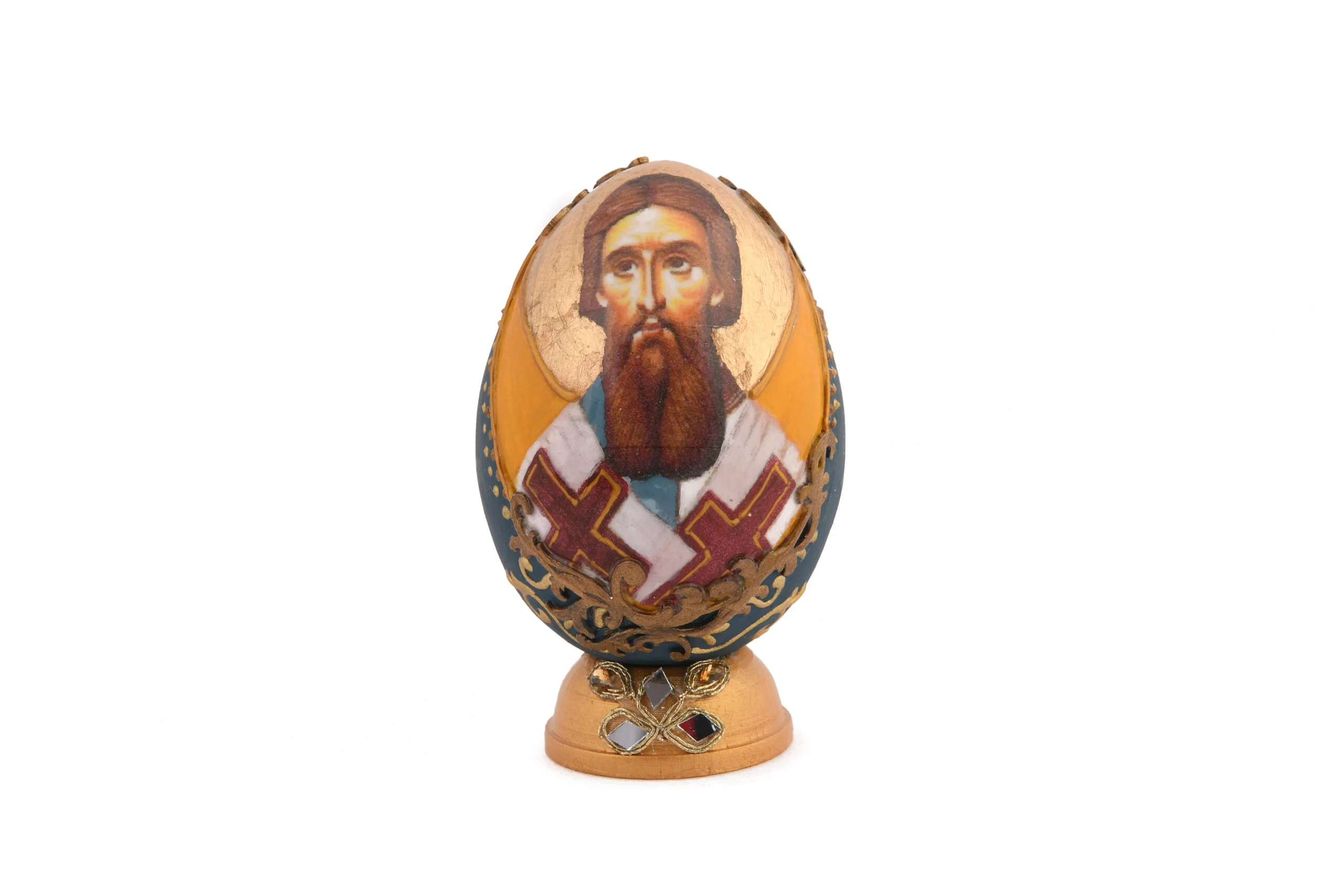 Дрвено декоративно јаје са осликаним ликом Светог Саве.