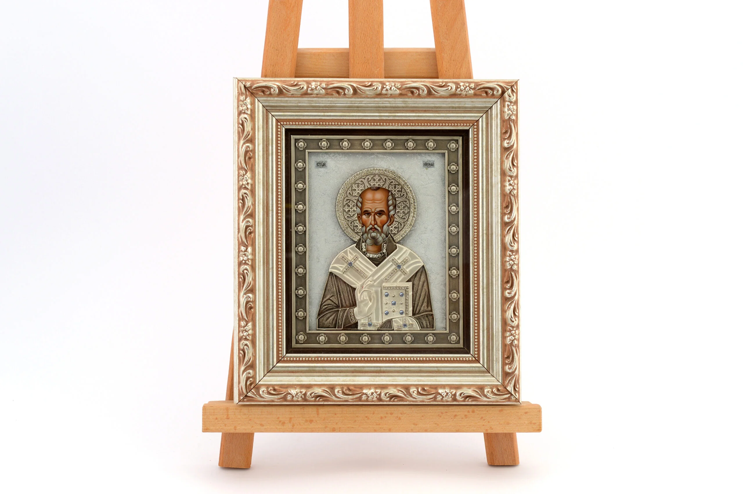Икона метална ливена Свети Никола сребрна