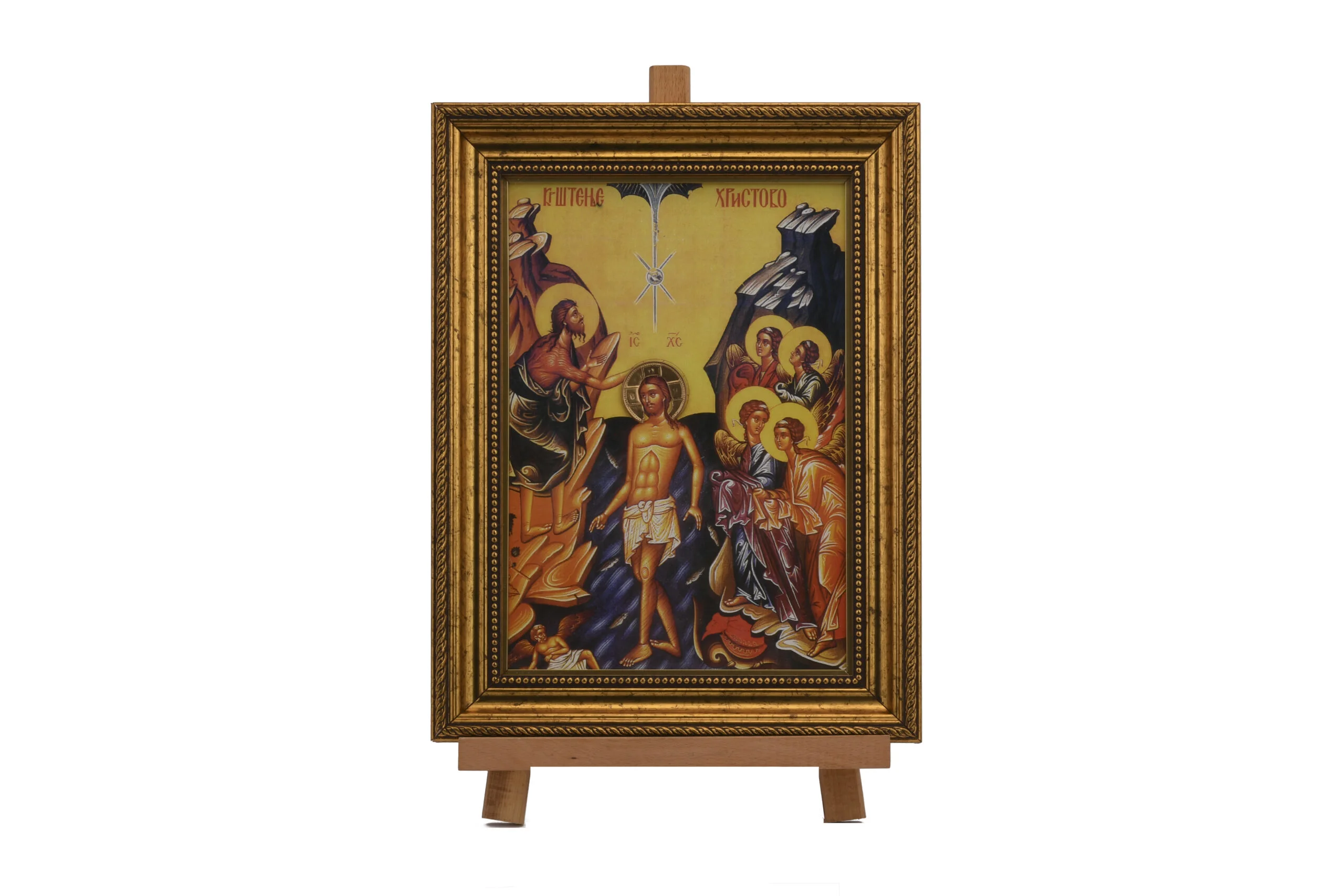 Урамљена, зидна, славска икона са приказом Крштења Христовог