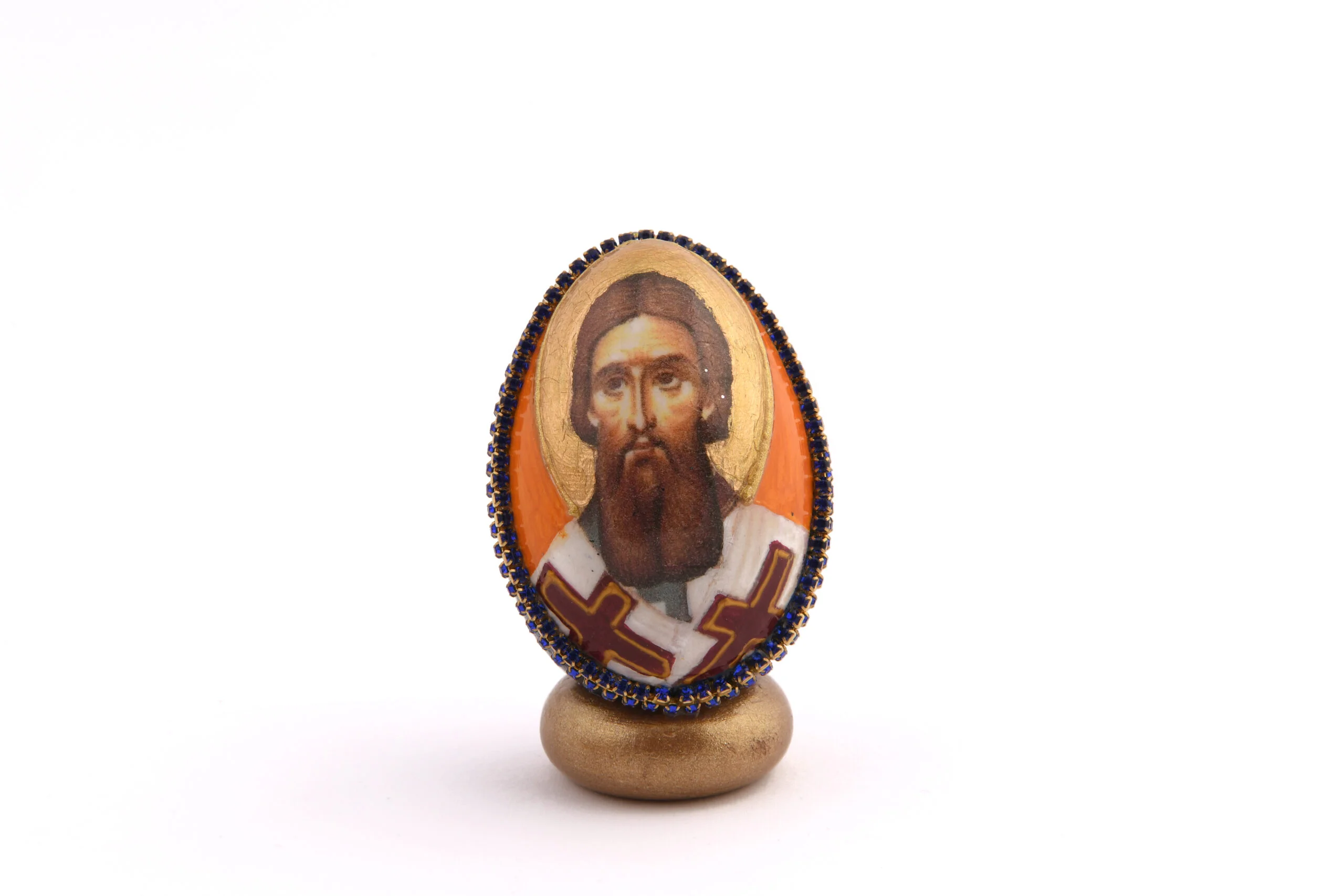 Ручно осликано мало, дрвено, декоративно јаје, са ликом Светог Саве.