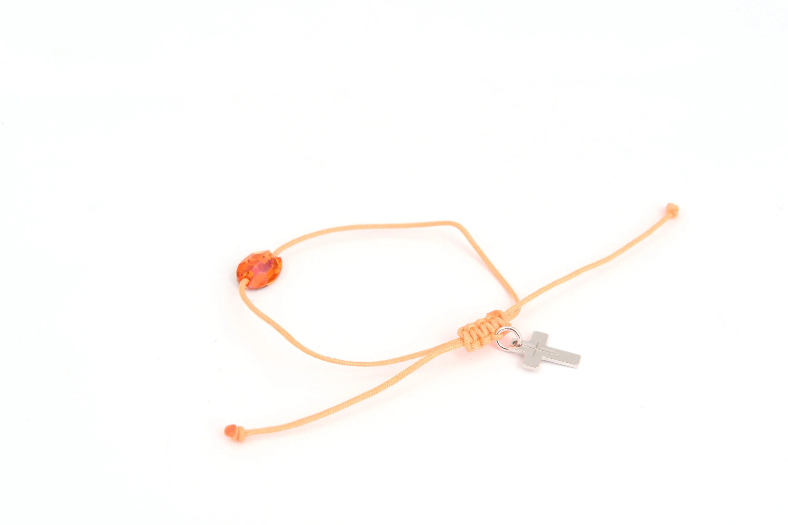 Наруквица израђена од наранџастог конца украшеног сваровски кристалом