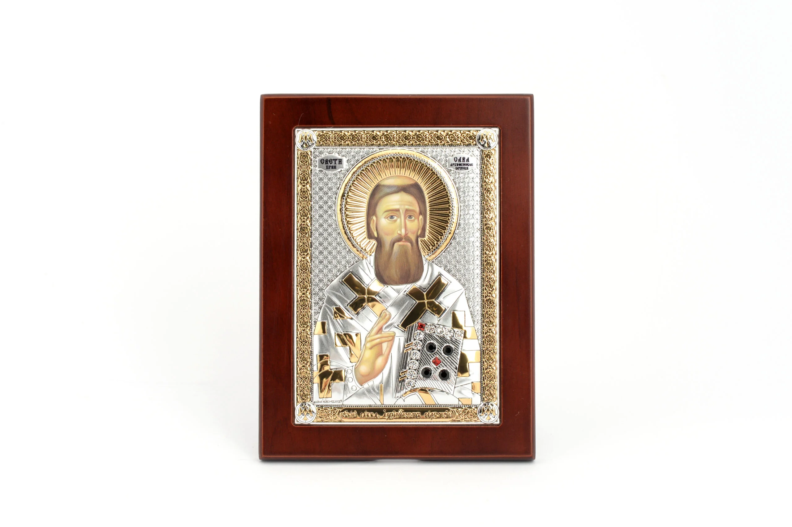 Посребрена икона Светог Саве у дрвету.