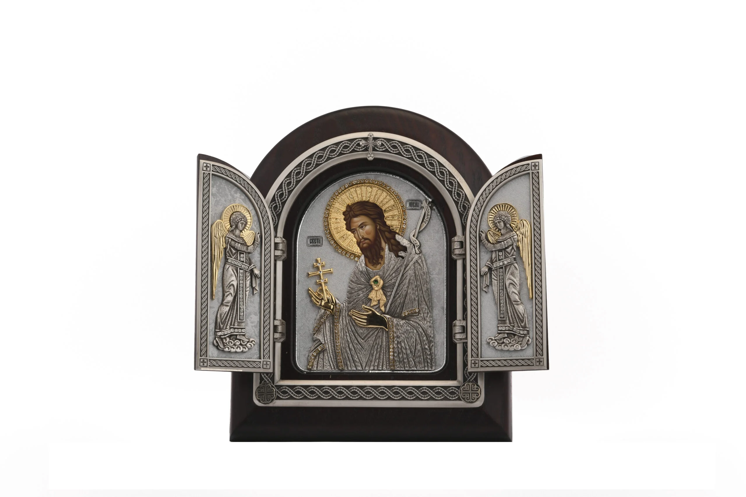 Триптих је израђен на дрвету, ливен, позлаћен и посребрен са приказом Светог Јована Крститеља