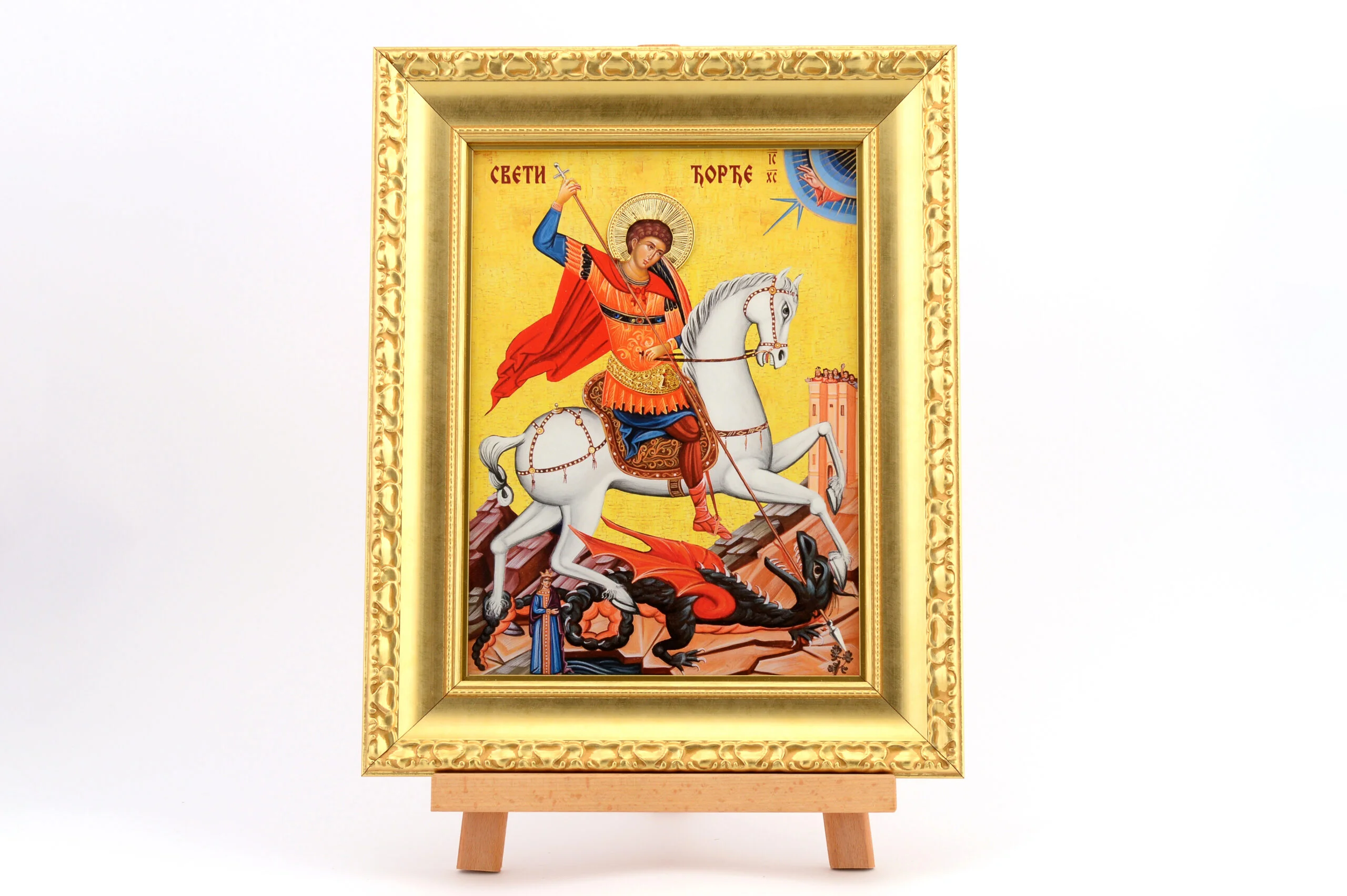 Славска икона Свети Ђорђе, у златном раму.