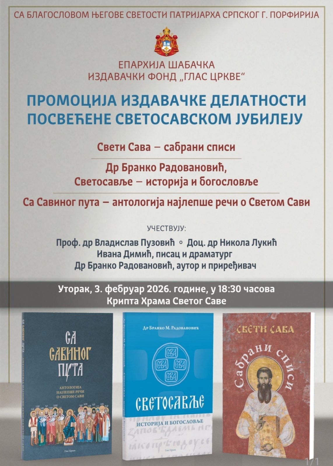 У Храму Светог Саве на Врачару, у суботу 31. јануара 2026. године, одржано је предавање архимандрита Рафаила (Бољевића) на тему…
